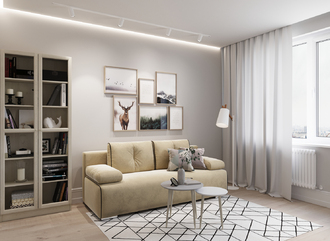 Спинка, выполненная в обивочной ткани, позволяет ставить диван в центре комнаты и зонировать пространство.