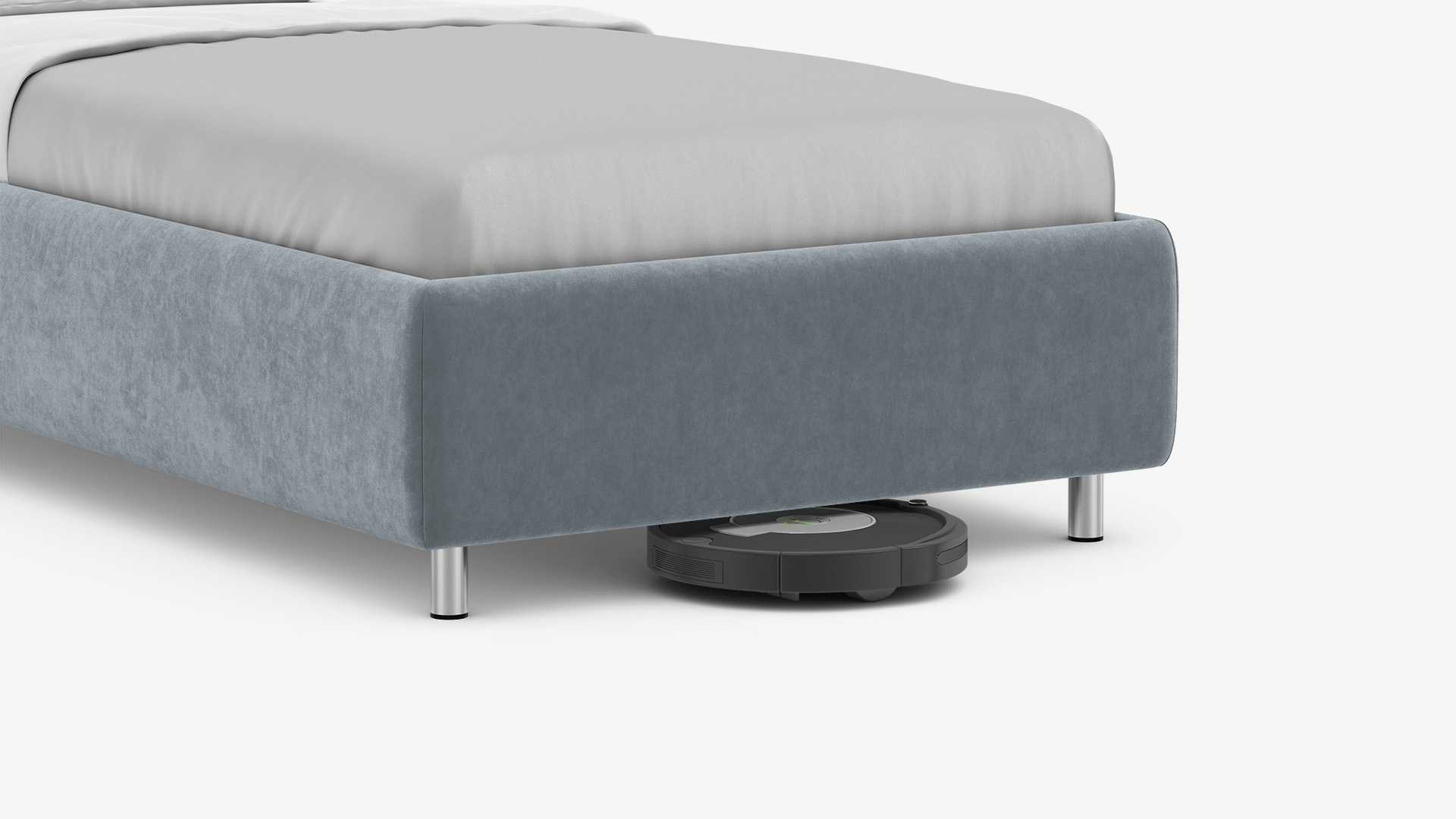 Металлические опоры создают над полом достаточный просвет для движения робота-пылесоса, что помогает поддерживать чистоту и порядок в доме.