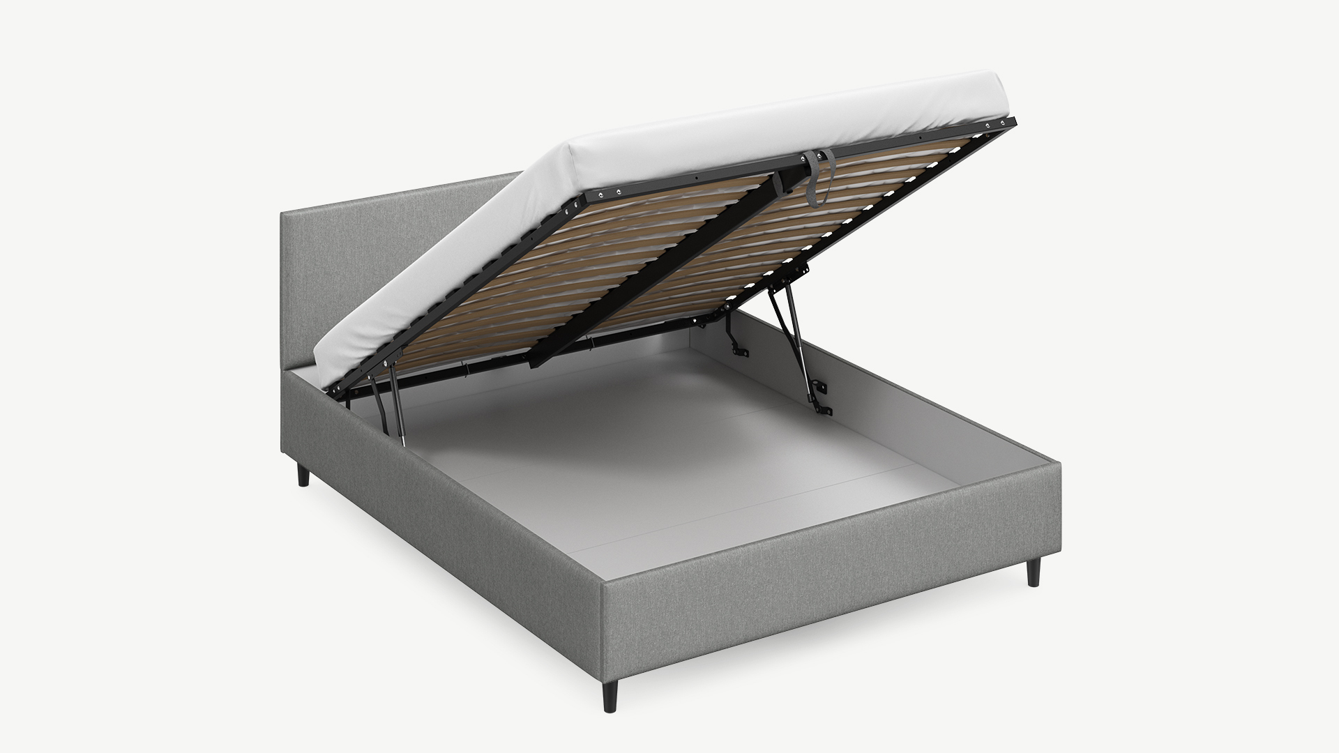 • Скрытая под основанием вместительная емкость без внутренних перегородок позволяет использовать всю площадь подкроватного пространства для хранения вещей.