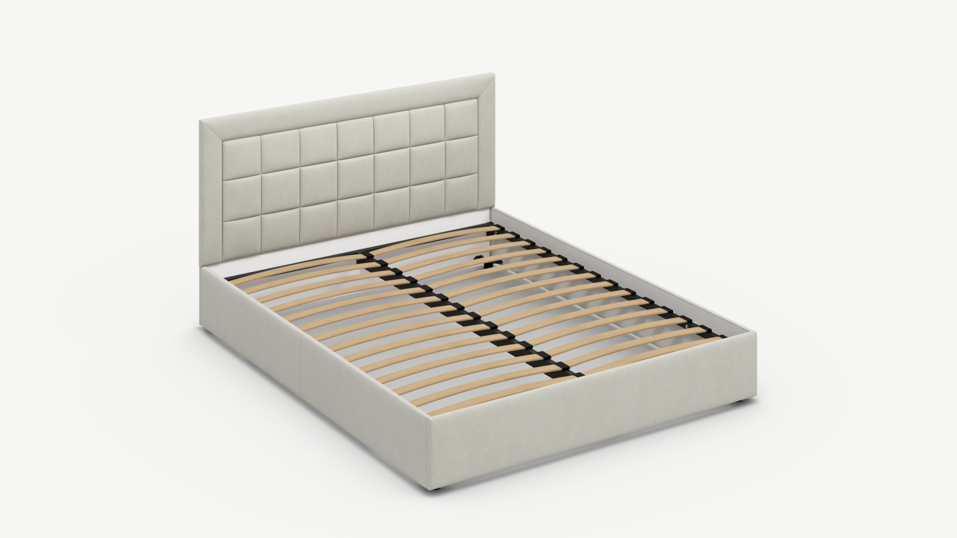 Проходящая по центру рамы металлическая траверса (поперечная балка) увеличенного сечения обеспечивает необходимую прочность основания с березовыми ламелями, препятствуя деформации конструкции.