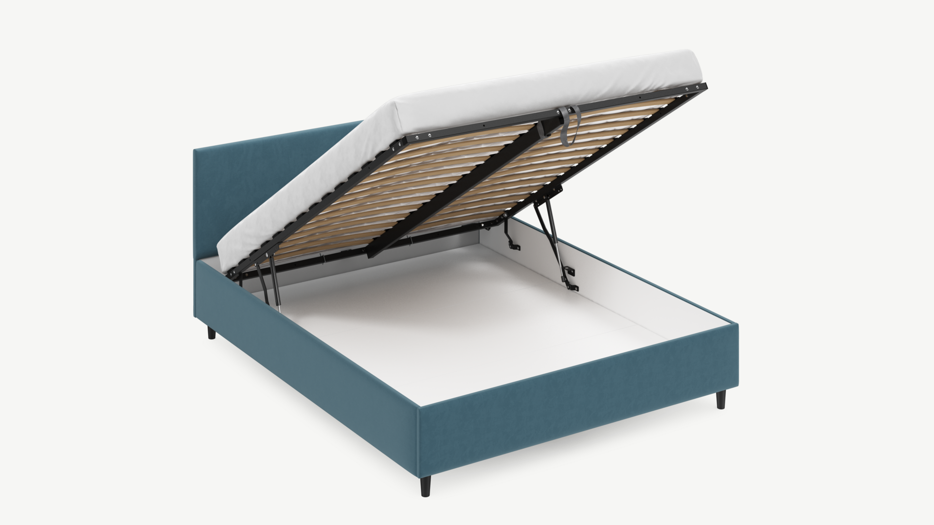 • Скрытая под основанием вместительная емкость без внутренних перегородок позволяет использовать всю площадь подкроватного пространства для хранения вещей.