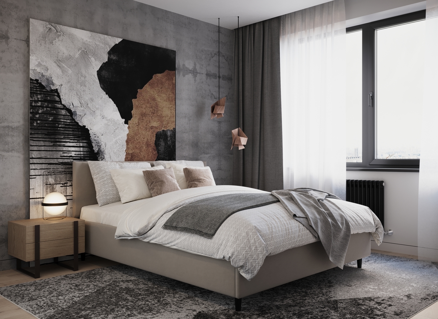 Создать гармоничный интерьер и завершить образ спальни помогут дополнительные аксессуары, например: тумбы, банкетки, подушки.
