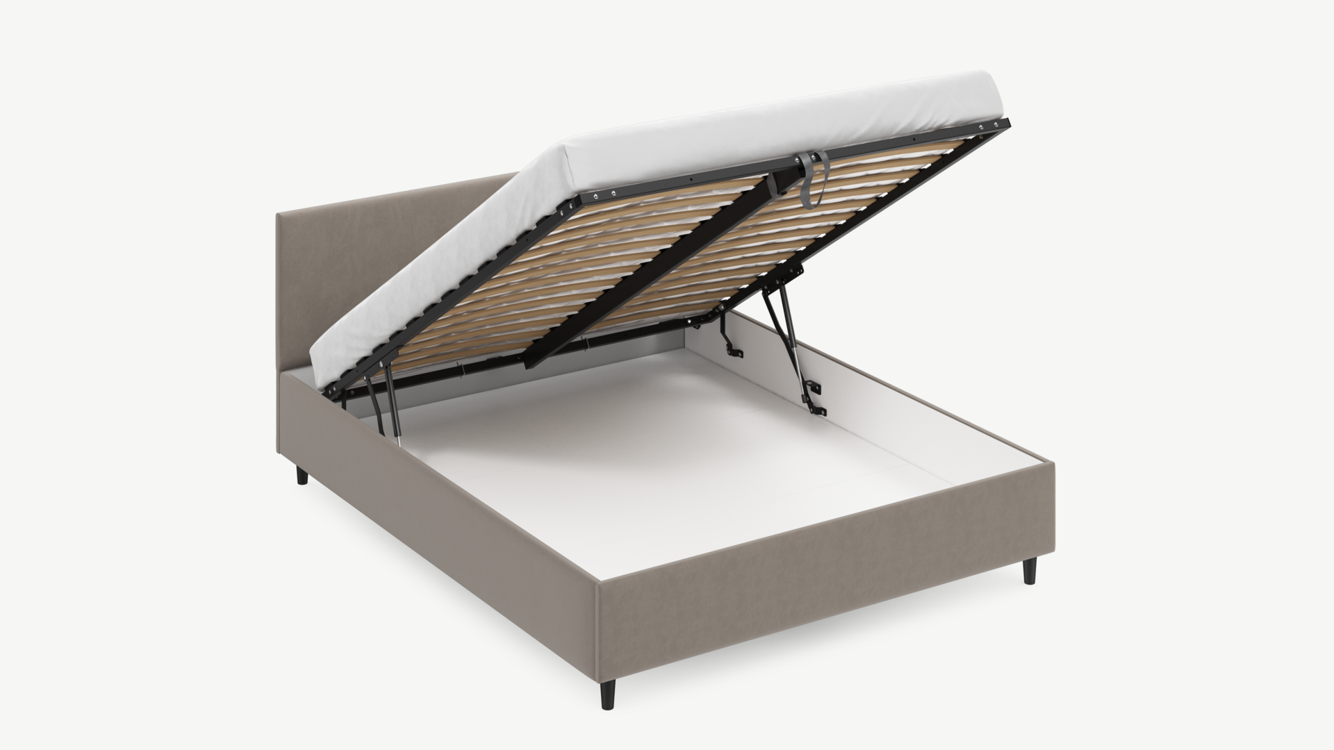 - Скрытая под основанием вместительная емкость без внутренних перегородок позволяет использовать всю площадь подкроватного пространства для хранения вещей.