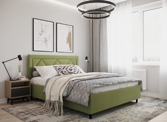 Фактура обивочного материала подбирается дизайнерами с учетом технологических и стилевых особенностей кровати.
