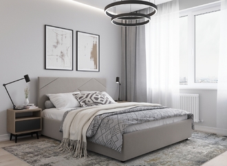 MOON FAMILY 1257 привлекает внимание оригинальным исполнением: широкие полосы ткани эффектно пересекают периметр изголовья, создавая на нем графический орнамент. Лаконичные формы объемных царг создают единый гармоничный образ и фокусируют внимание на центральном текстурном элементе кровати.