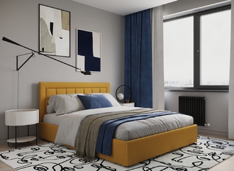 Создать гармоничный интерьер и завершить образ спальни помогут дополнительные аксессуары, например: тумбы, банкетки, подушки.