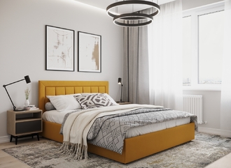 Стежка помещена в центр изголовья и обрамлена, словно картина. Объемные царги становятся гармоничным дополнением образа и завершают цельную фигуру кровати.