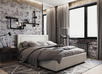 Фактура обивочного материала подбирается дизайнерами с учетом технологических и стилевых особенностей кровати.