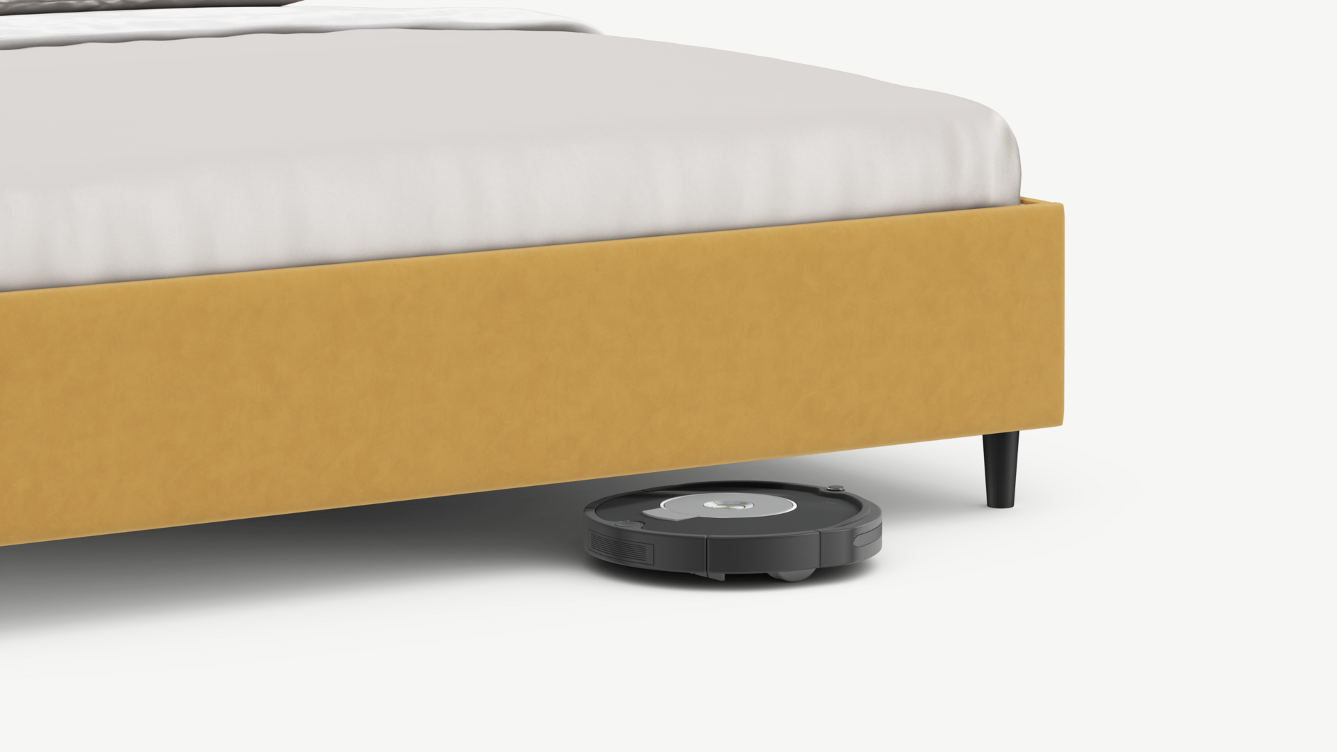 Благодаря высоким опорам под кроватью проходит робот-пылесос и легко проводится влажная уборка, что обеспечивает чистоту и порядок в доме.