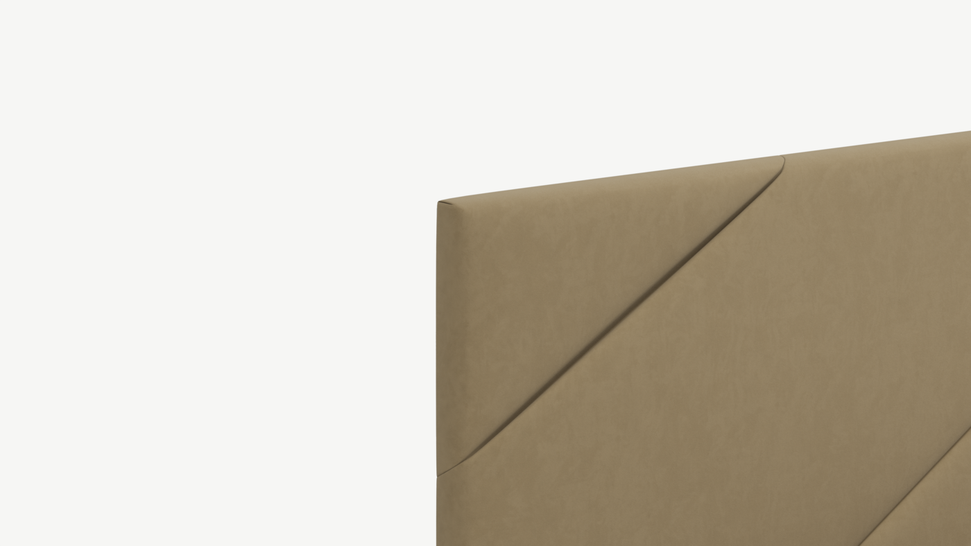 MOON FAMILY 1257 привлекает внимание оригинальным исполнением: широкие полосы ткани эффектно пересекают периметр изголовья, создавая на нем графический орнамент. Элегантным и практичным акцентом служат скрытые карманы, расположенные по его углам. Лаконичные формы объемных царг создают единый гармоничный образ и фокусируют внимание на центральном текстурном элементе кровати.
