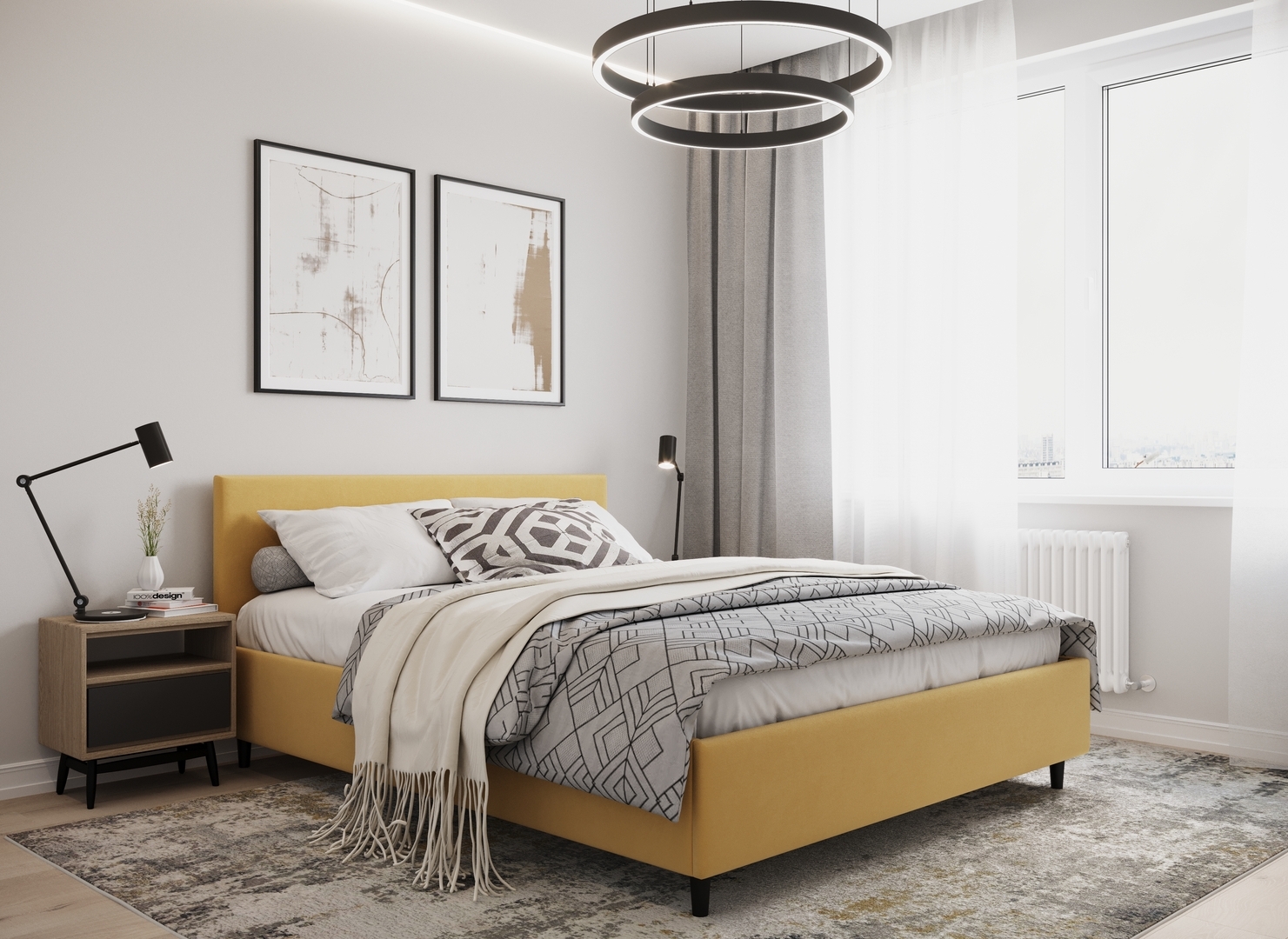 Создать гармоничный интерьер и завершить образ спальни помогут дополнительные аксессуары, например: тумбы, банкетки, подушки.