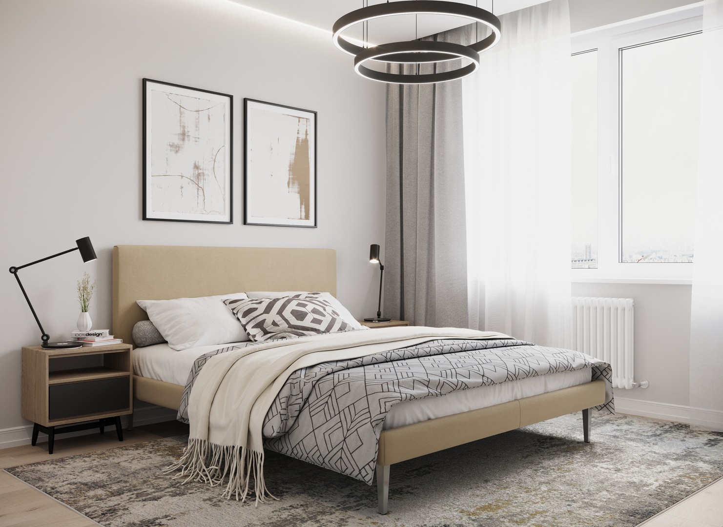 Создать гармоничный интерьер и завершить образ спальни помогут дополнительные аксессуары, например: тумбы, банкетки, подушки.