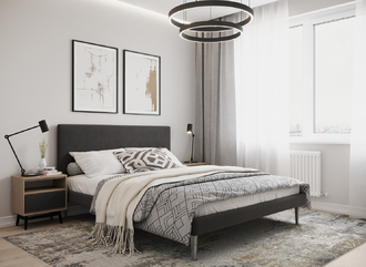Кровать MOON FAMILY 1256 отлично дополнит большинство современных интерьеров, а также сумеет обыграть стили «Сканди» и «Лофт».