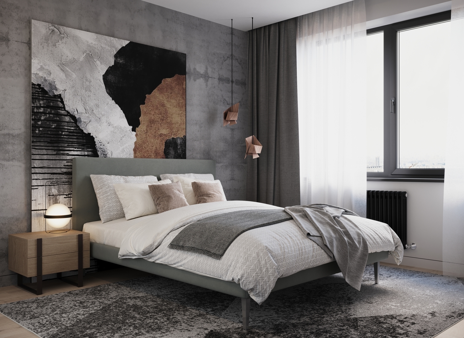 Создать гармоничный интерьер и завершить образ спальни помогут дополнительные аксессуары, например: тумбы, банкетки, подушки.