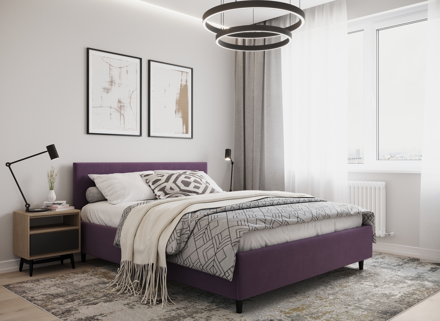 Создать гармоничный интерьер и завершить образ спальни помогут дополнительные аксессуары, например: тумбы, банкетки, подушки.