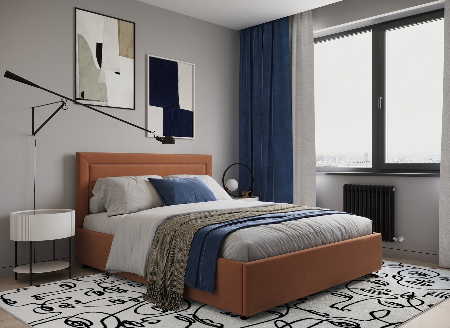 Создать гармоничный интерьер и завершить образ спальни помогут дополнительные аксессуары, например: тумбы, банкетки, подушки.