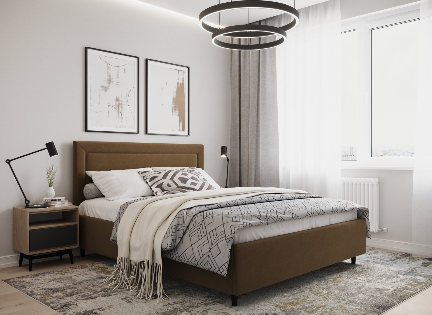 Создать гармоничный интерьер, а также целостный образ спальни помогут дополнительные аксессуары - например, тумбы, банкетки, подушки.