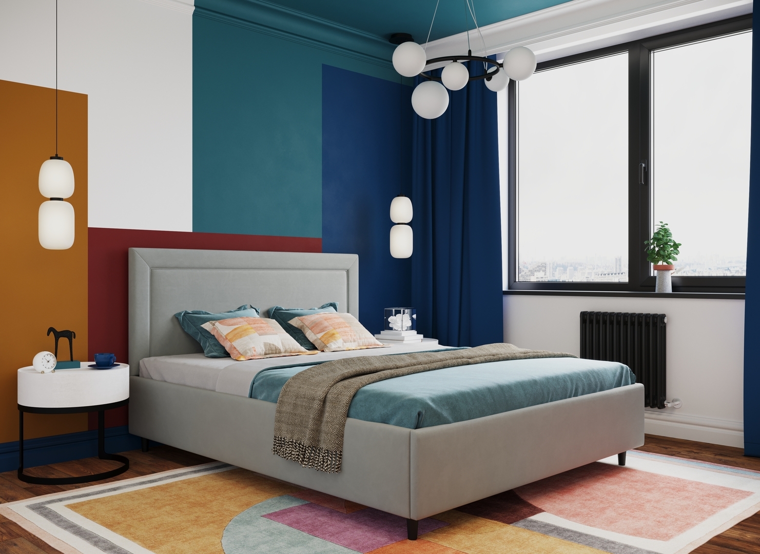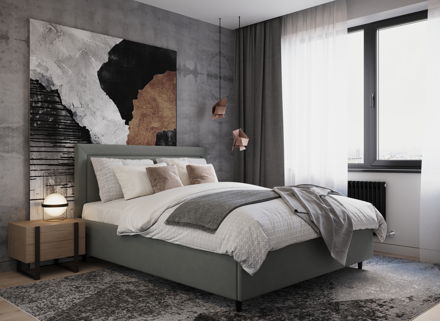 Создать гармоничный интерьер и завершить образ спальни помогут дополнительные аксессуары, например: тумбы, банкетки, подушки.