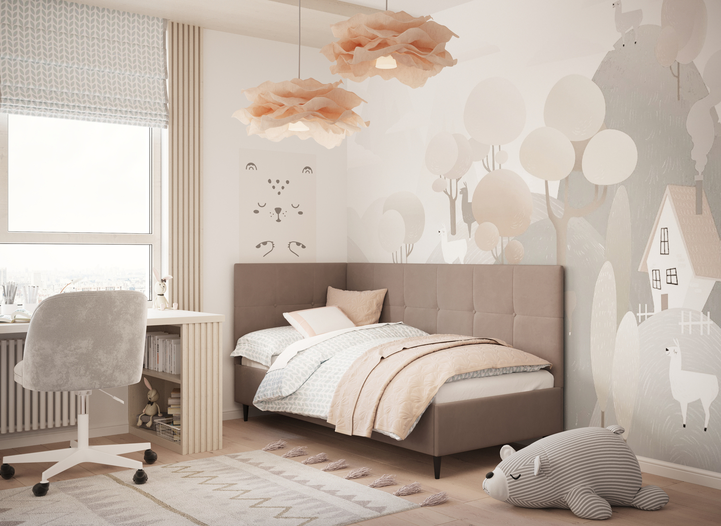 MOON FAMILY 1261 объединяет функциональность и стиль, создавая гармоничное пространство для отдыха и творчества. Кровать доступна в левостороннем и правостороннем исполнении, что позволяет легко адаптировать ее под любые интерьерные особенности.