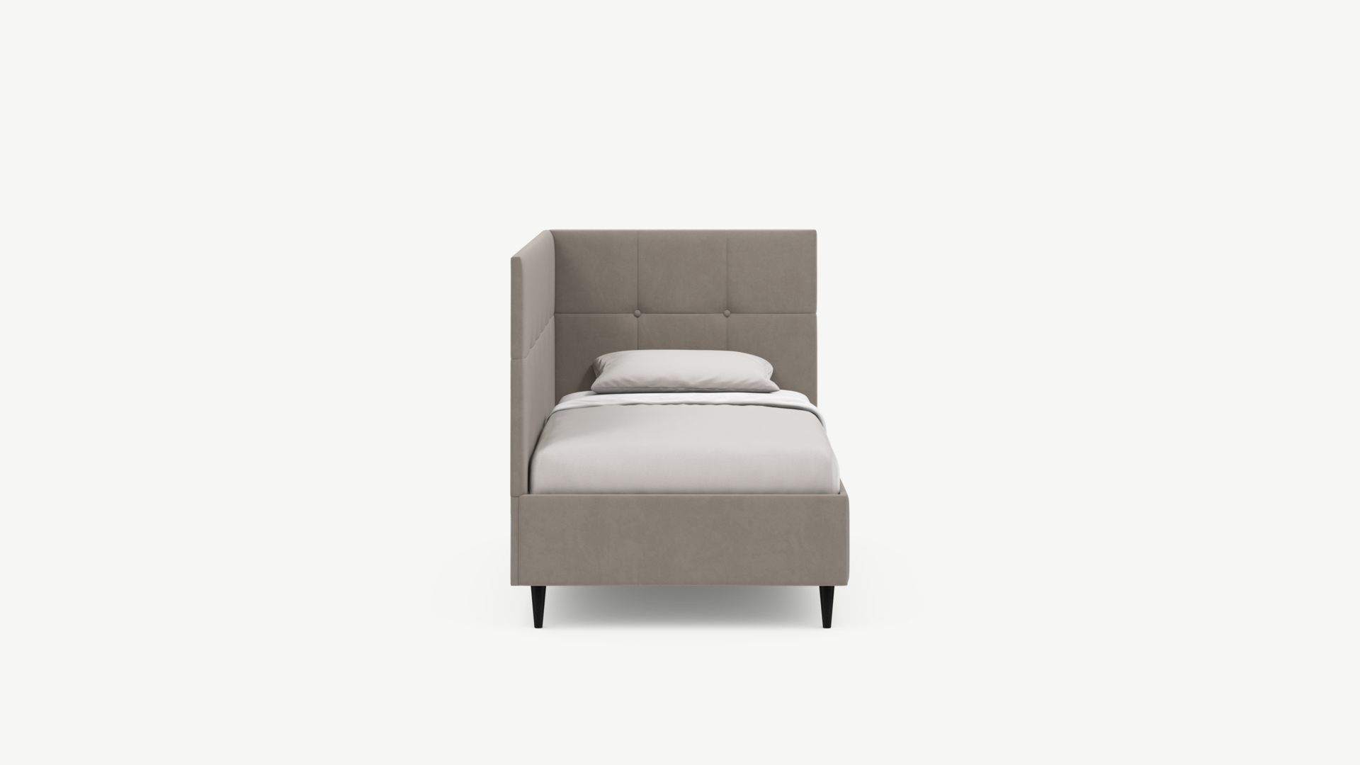 Угловая односпальная кровать MOON FAMILY 1261 с мягкой спинкой и изголовьем создаст в Вашей спальне ощущение уюта. Крупная квадратная стежка привносит в интерьер графических акцентов, а вставка из пуговиц наполняет пространство ощущением домашнего тепла.