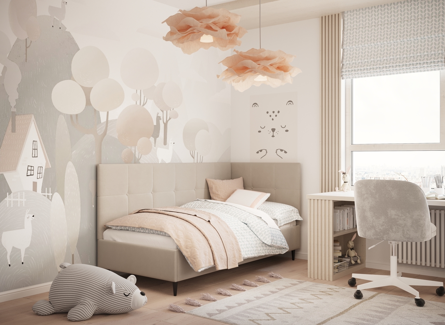 MOON FAMILY 1261 объединяет функциональность и стиль, создавая гармоничное пространство для отдыха и творчества. Кровать доступна в левостороннем и правостороннем исполнении, что позволяет легко адаптировать ее под любые интерьерные особенности.