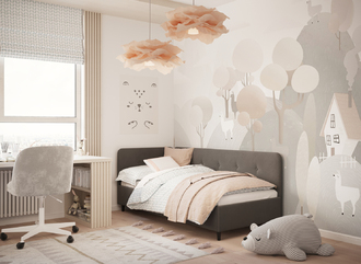 В подростковой комнате эта кровать станет стильным акцентом окружающего интерьера и возьмет на себя роль удобной кушетки для друзей, зашедших в гости.