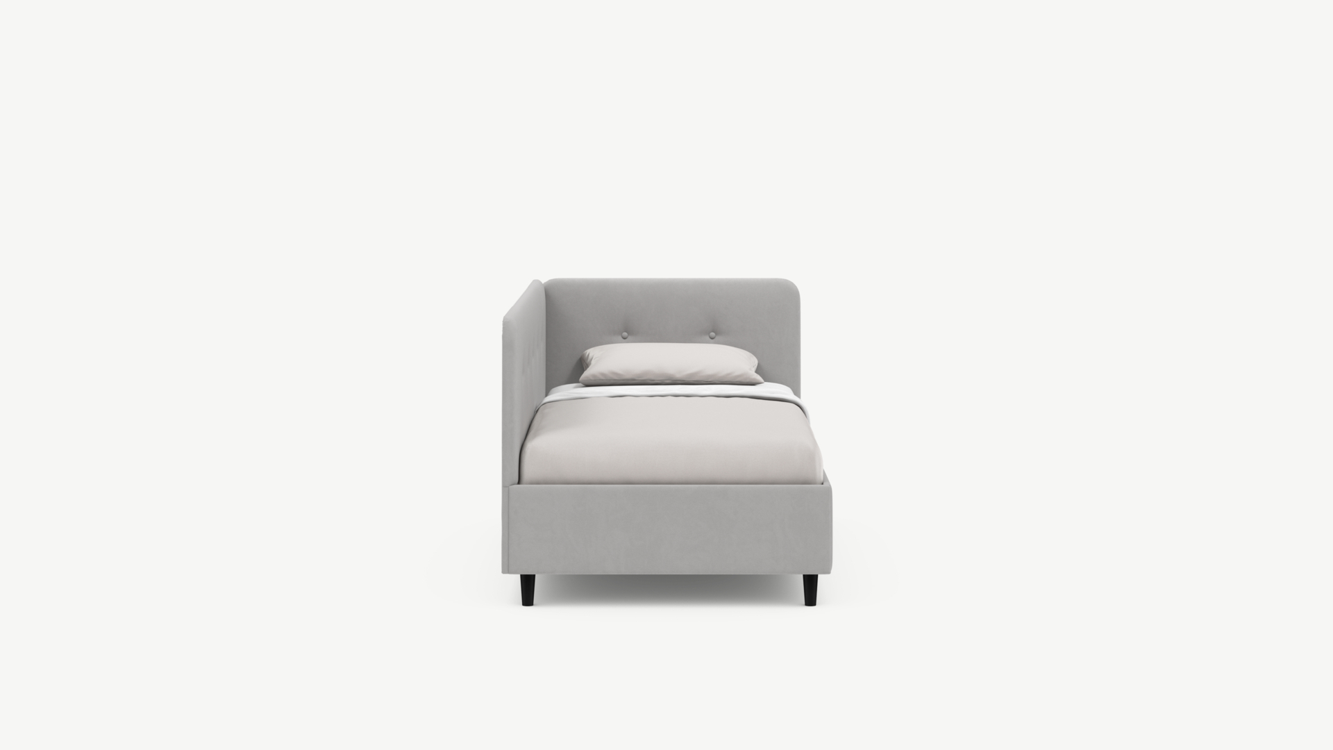 Угловая односпальная кровать MOON FAMILY 1253 с мягкой спинкой и изголовьем обладает округлыми формами, привносящими в интерьер нотки нежности. Изголовье, украшенное пуговицами, добавляет окружающему пространству шарм и уют. Высокие опоры придают кровати визуальной легкости, а также обеспечивают удобство во время уборки.