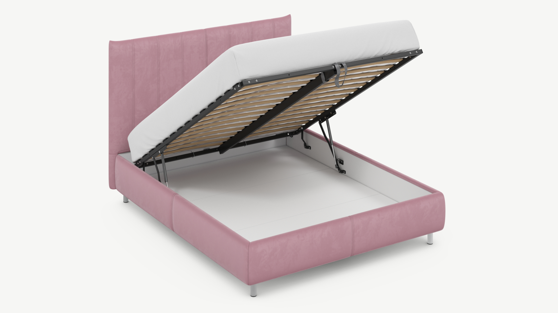 • Скрытая под основанием вместительная емкость без внутренних перегородок позволяет использовать всю площадь подкроватного пространства для хранения вещей.