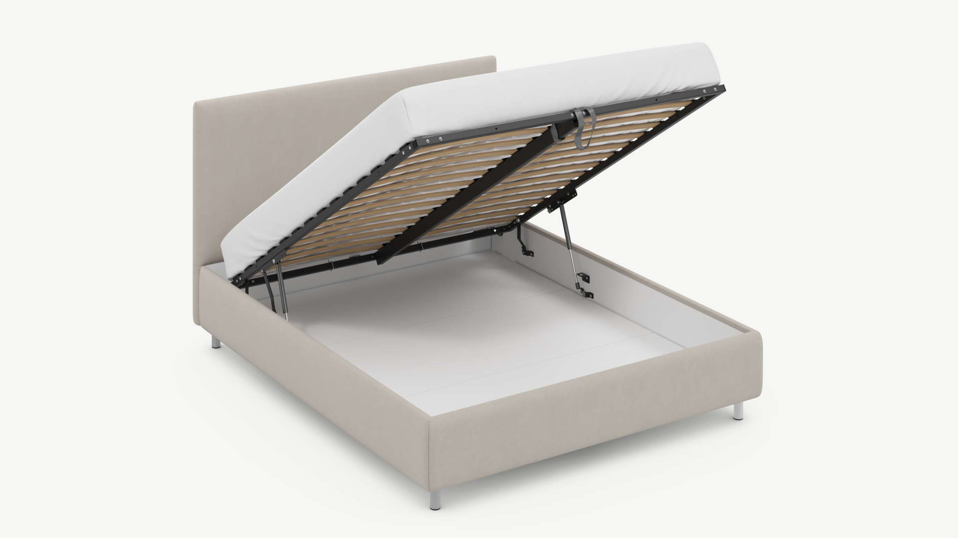• Скрытая под основанием вместительная емкость без внутренних перегородок позволяет использовать всю площадь подкроватного пространства для хранения вещей.