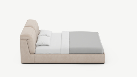 Изголовье подчеркивает эстетику MOON 1107, а также дарит дополнительный комфорт и уют спальному месту. Обратная сторона изголовья выполнена в мебельной ткани и позволяет ставить кровать в центре комнаты для зонирования пространства.