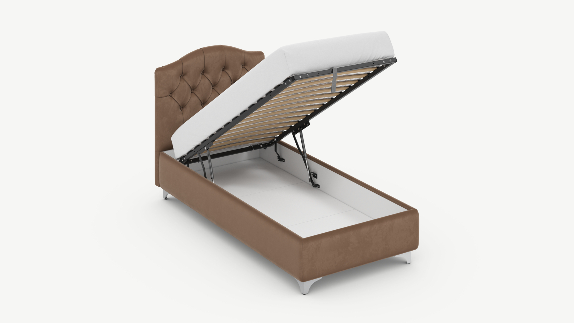 • Скрытая под основанием вместительная емкость без внутренних перегородок позволяет использовать всю площадь подкроватного пространства для хранения вещей.