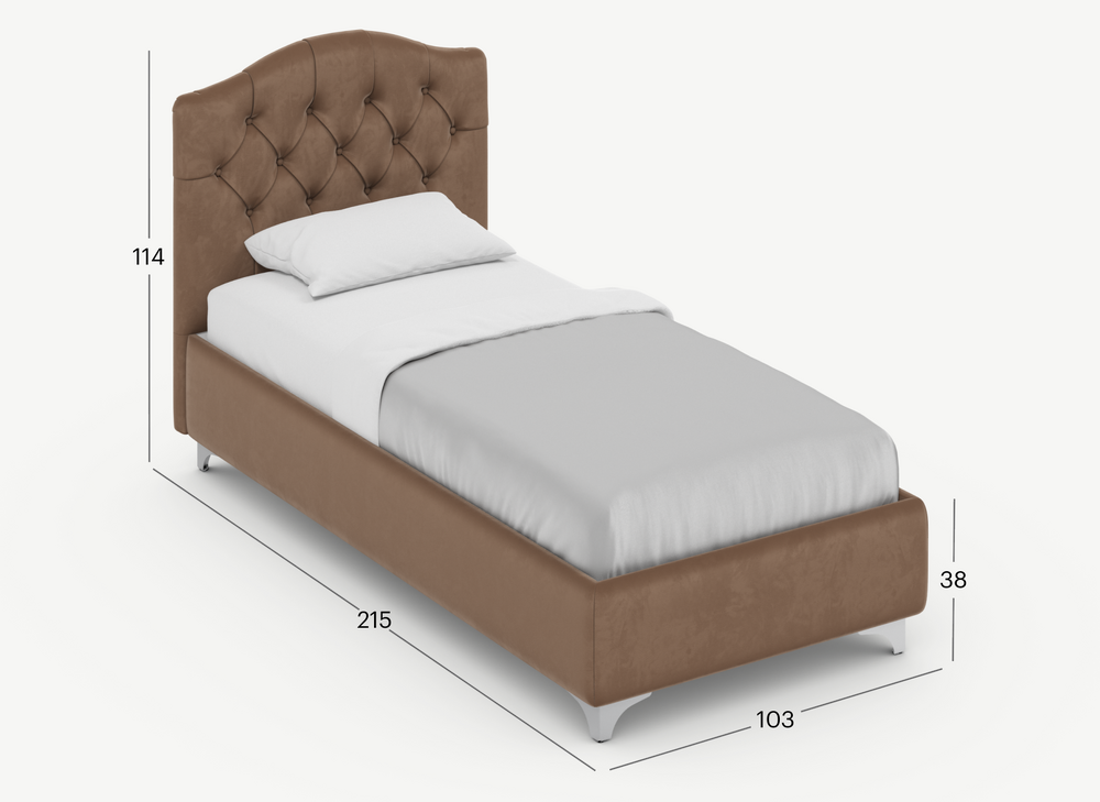 Разнообразие цветовой палитры позволит подобрать желаемый оттенок обивочной ткани. Использование светлых цветов поддержит настроение стиля «Сканди». Приглушенные насыщенные оттенки оформят кровать в стиле «Лофт». Нейтральные оттенки в цвет интерьера обыграют спальню в Современном стиле.