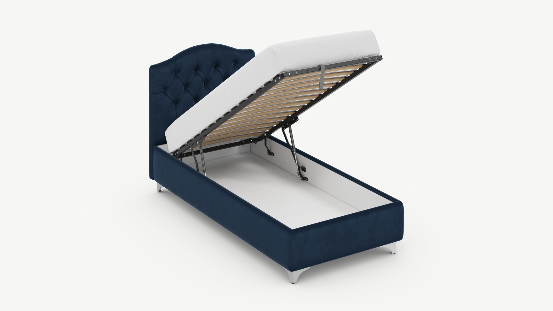 • Скрытая под основанием вместительная емкость без внутренних перегородок позволяет использовать всю площадь подкроватного пространства для хранения вещей.